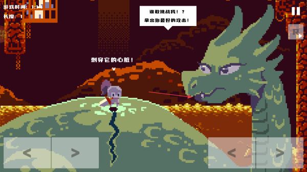2、像素风格复古氛围:采用经典像素美术风格,角色动作、场景元素、巨龙造型均以像素块构建,英雄挥剑有清晰的动作帧,巨龙攻击有明显的特效提示。