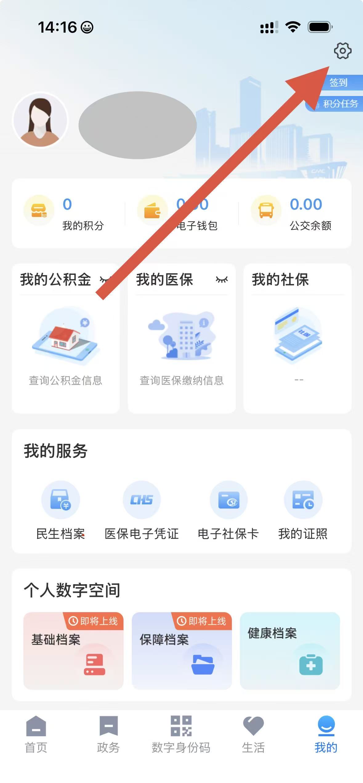 2、在个人页面,点击右上角的设置图标,进入设置界面。