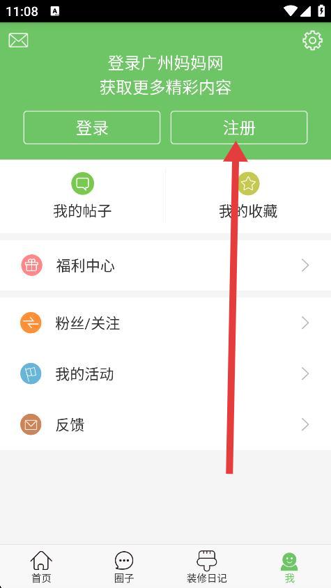 2、在个人中心页面,点击注册选项,跳转至注册界面。