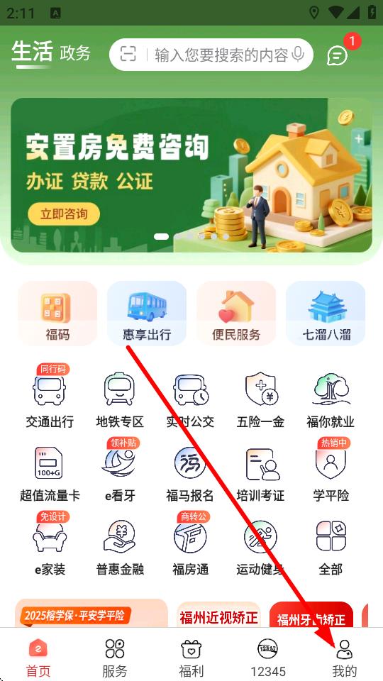 1、在e福州APP首页,点击底部我的选项进入个人中心页面。