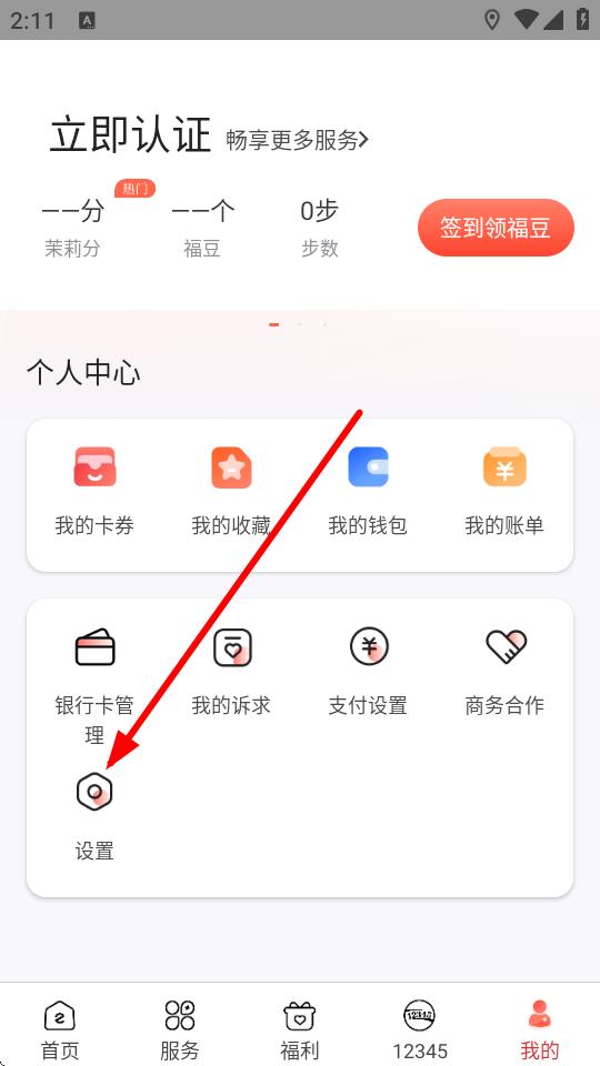 2、在个人中心页面里,点击设置选项,进入设置界面。