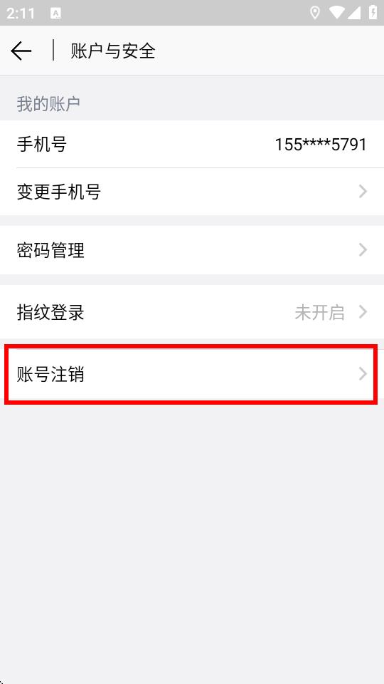 4、在账户与安全页面里,点击账号注销选项,进入账号注销页面。