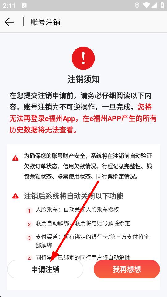 5、在账号注销页面,仔细阅读注销须知后,点击申请注销按钮,完成账户注销操作。