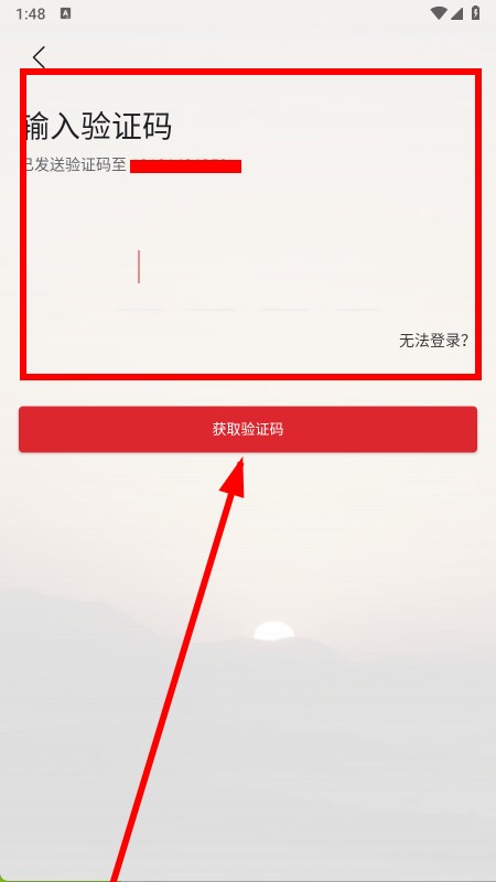 4、在验证码输入页面,输入收到的验证码,完成账号登录或注册。