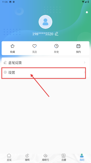 2、打开音频应用,点击我的进入个人中心,选择设置选项。