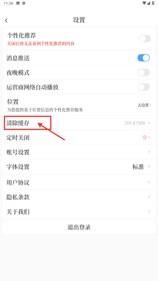 3、在设置页面,找到清除缓存选项并点击,触发缓存清理确认弹窗。