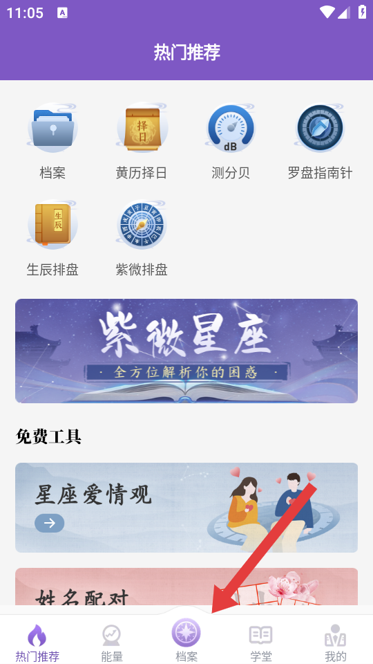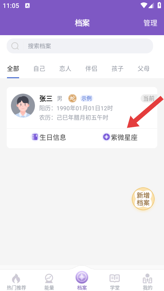 1、进入灵动紫微后,点击底部的档案,进入档案管理的页面。