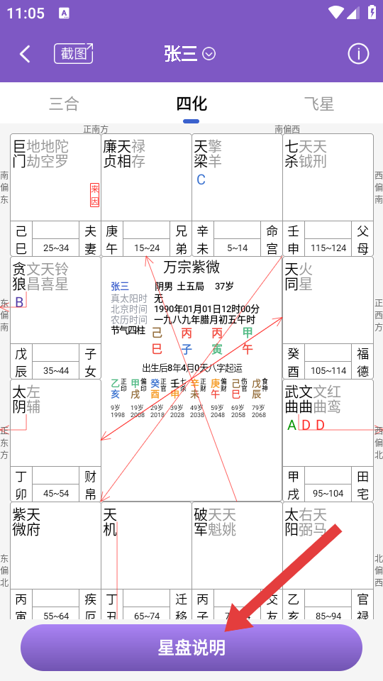 2、在档案页面中,点击紫微星座,可进入个人紫微星座分析界面。