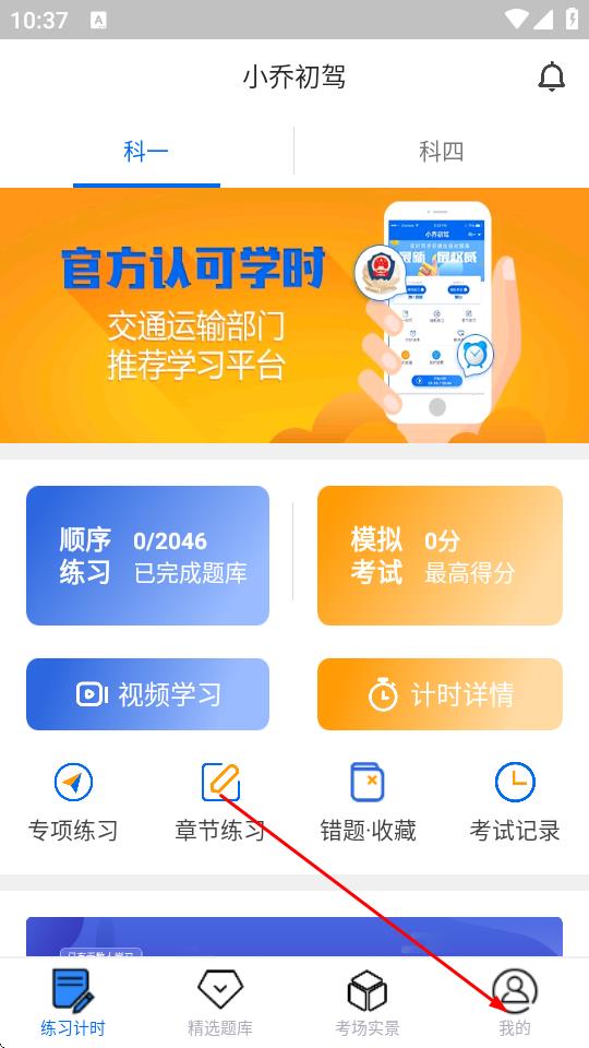1、打开小乔初驾APP,进入主界面,点击底部导航栏中的我的。