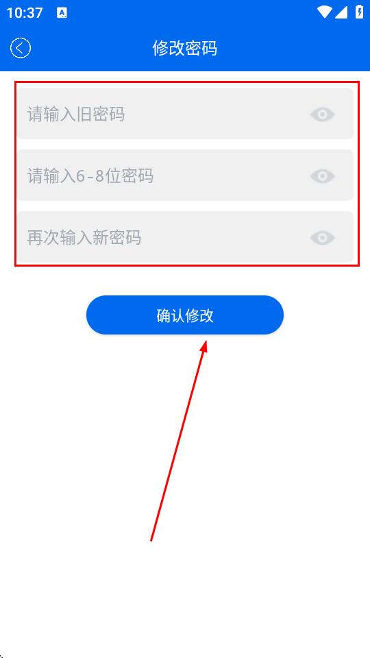 4、在修改密码页面,依次输入旧密码、新密码、再次输入新密码,点击确认修改。