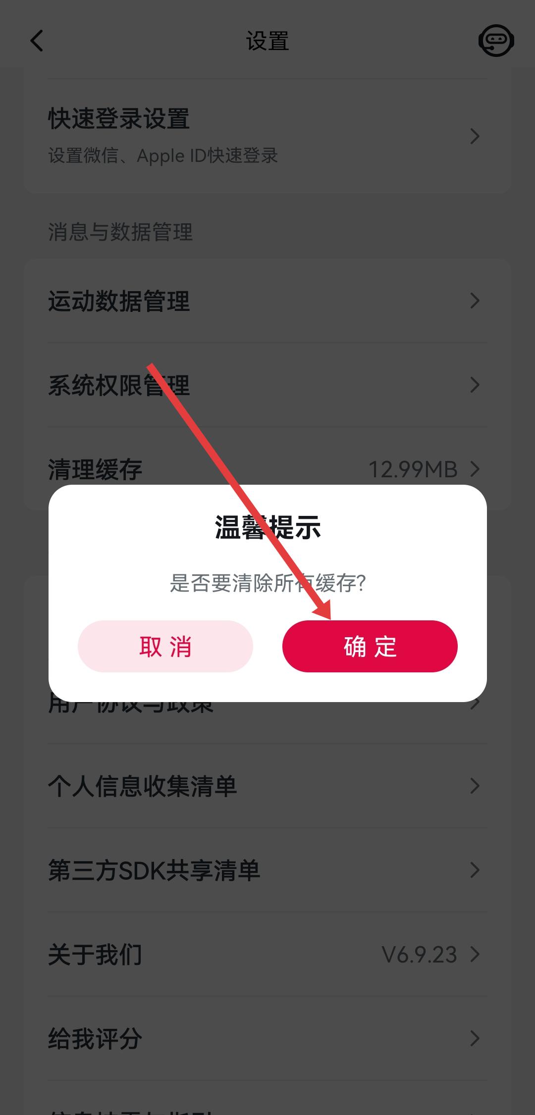 3、在设置的界面,需要点击清理缓存,将会弹出温馨提示框。