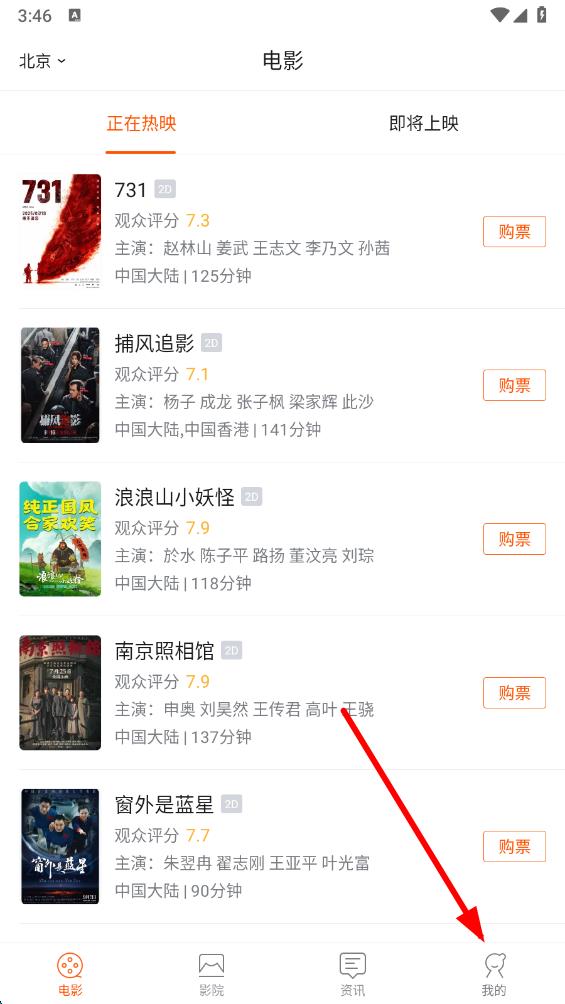 1、打开卖座电影app,点击底部导航栏中的我的。