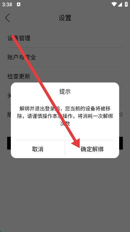 4、点击确定解绑按钮,即可完成退出登录操作。