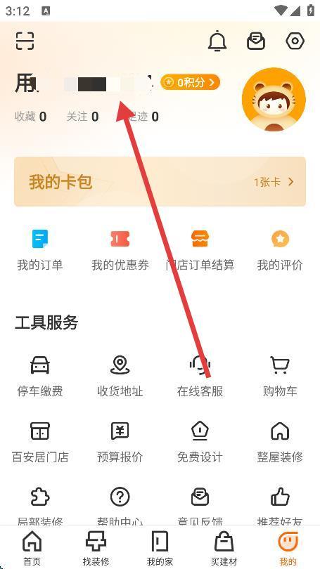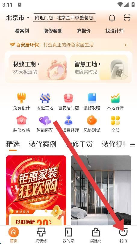 1、打开百安居app,点击底部导航栏右下角我的选项。