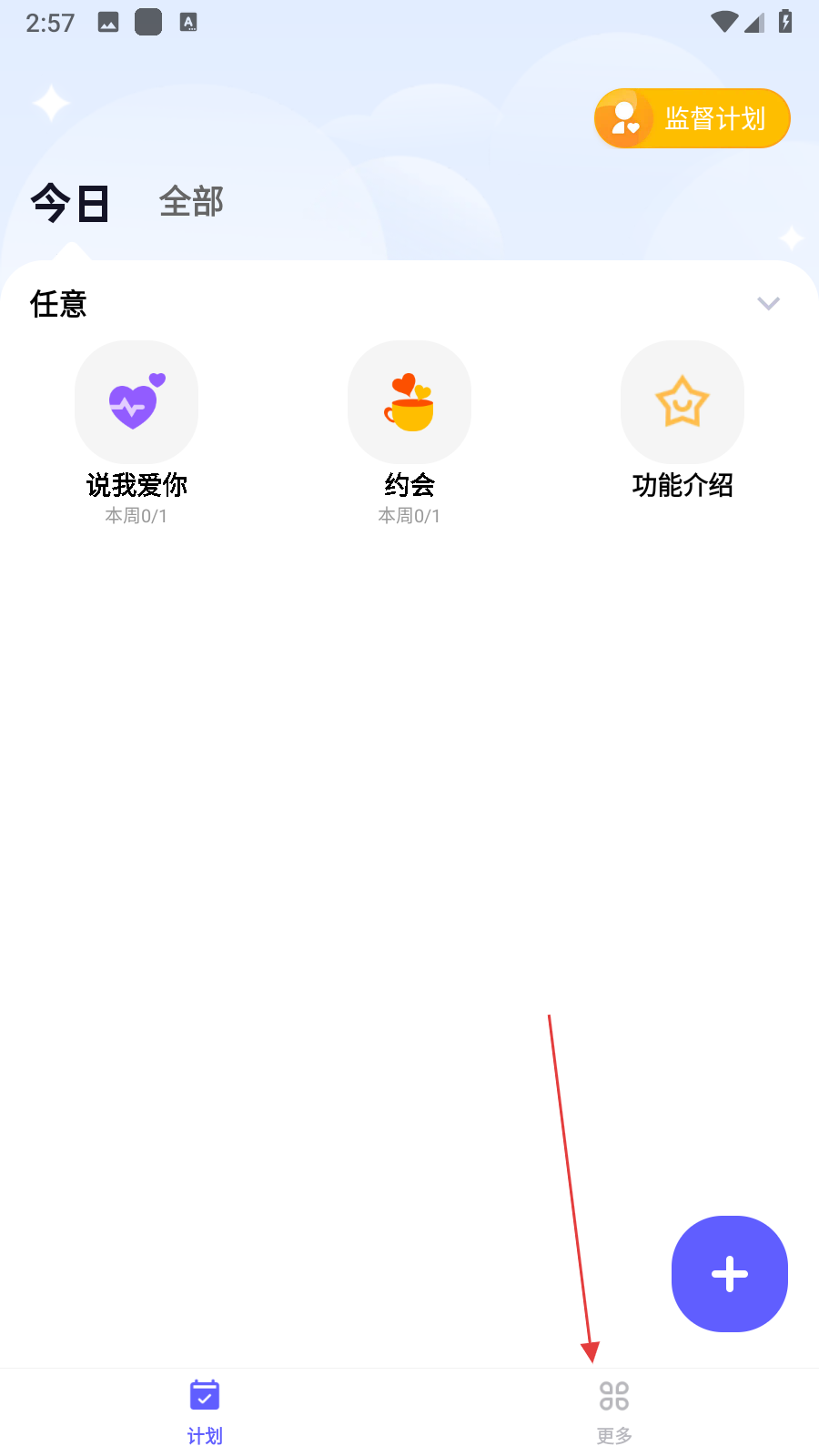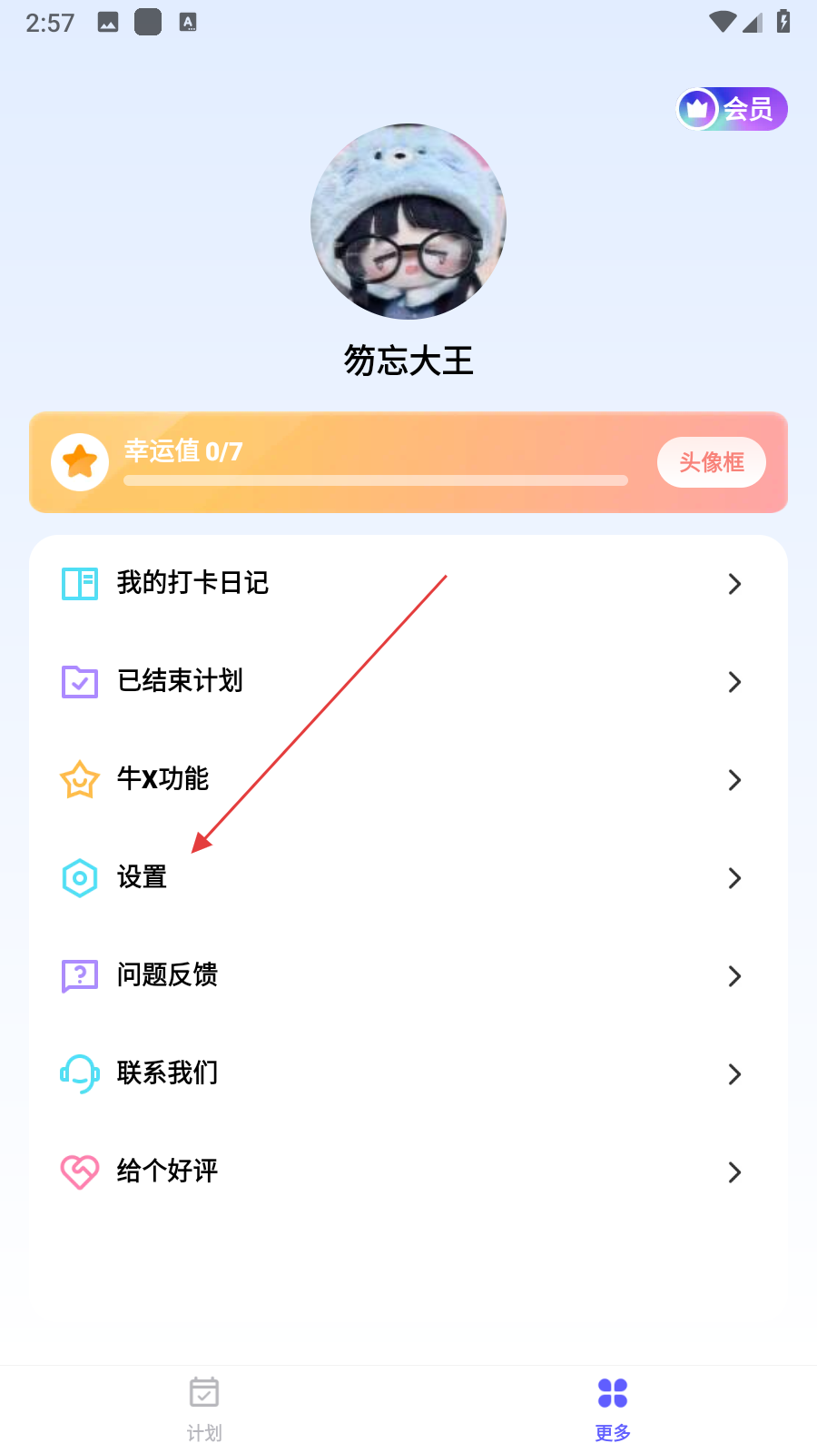 1、打开小计划应用,在计划页面点击底部更多,进入个人相关页面。