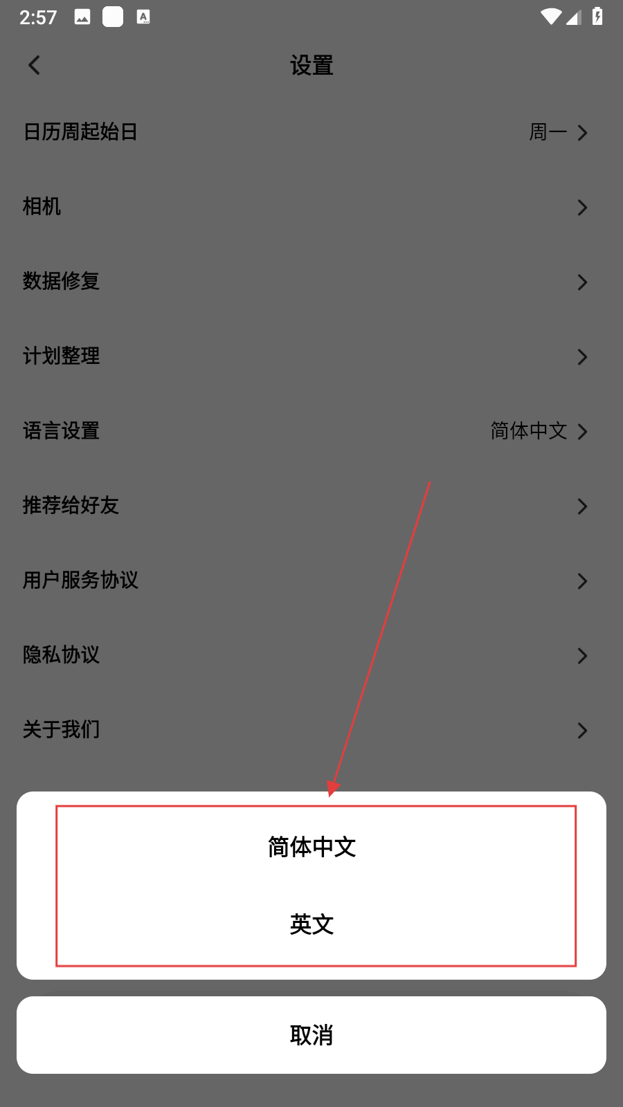 3、在设置界面中,点击语言设置选项,随即弹出语言选择窗口。