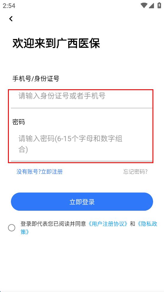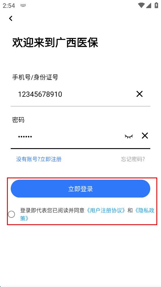 4、勾选“登录即代表您已阅读并同意用户注册协议和隐私政策,最后点击“立即登录”,即可完成广西医保的登录。