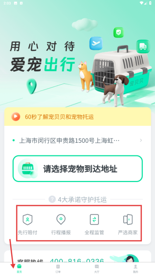 1、门到门接送服务:提供门到门接送的便利服务,无需用户自行将宠物送到指定站点,极大减少用户的时间与精力消耗,提升托运便捷性。