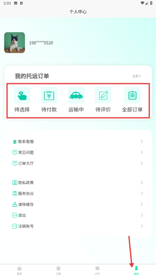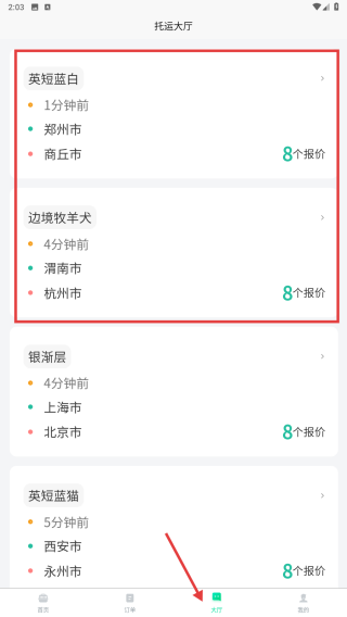 3、查看行程动态:确认订单后进入“我的订单”页面,点击对应订单即可实时查看宠物托运的行程进度、位置及状态汇报,掌握宠物情况。