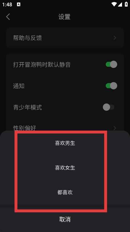 4、在弹出的选择框里,点击选择自己所需的偏好即可完成设置。