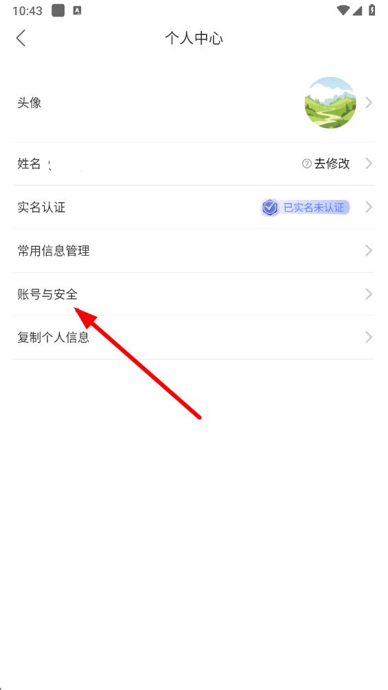 2、在个人中心页面里,点击账号与安全选项,进入账号与安全界面。