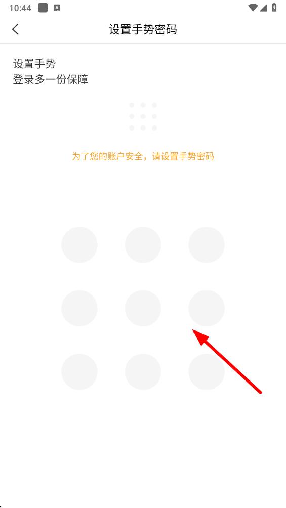 5、进入设置手势密码界面,在九宫格上绘制手势密码,完成绘制后,即可成功开启手势密码。