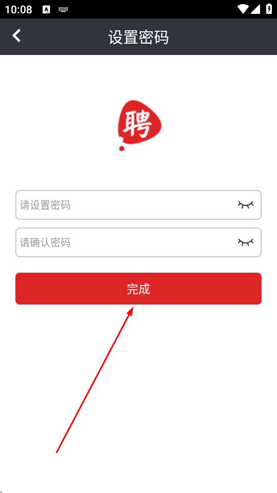 5、进入设置密码页面,设置密码并再次确认密码,点击完成,即可完成注册。