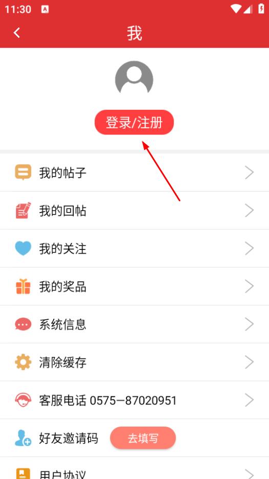 2、在我的页面,点击图标下方的登录注册,进入登录页面。