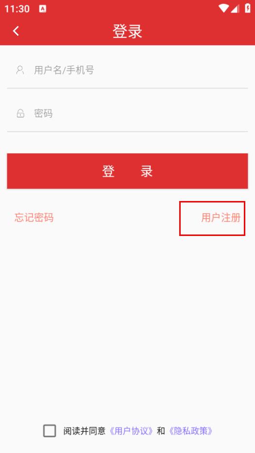 3、在登录页面,点击用户注册,进入注册页面。