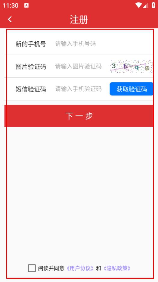 4、在注册页面,输入信息勾选协议后点击下一步,完成注册。