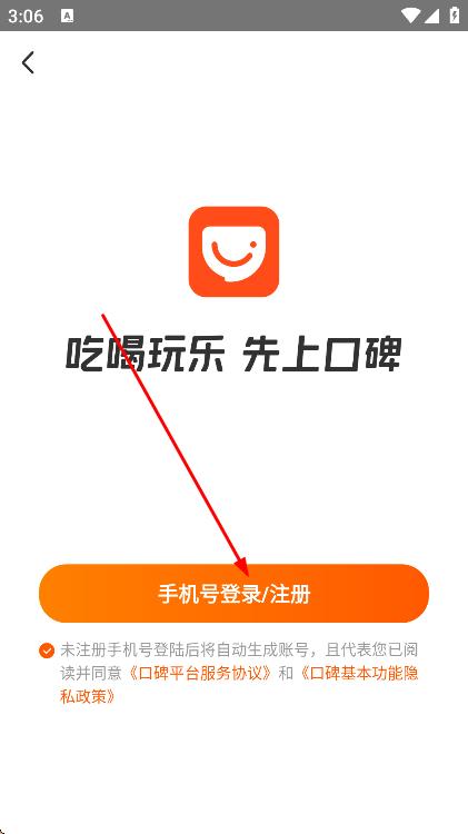 3、进入登录页面后,点击手机号登录/注册按钮。