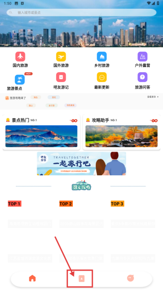 1、打开旅游类应用,点击底部中间的日记图标,进入日记页面。