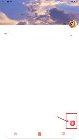 2、在日记页面,点击右下角红色+号,进入写日记界面。