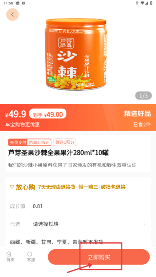 4、在商品详情页,点击立即购买按钮,进行商品购买操作。