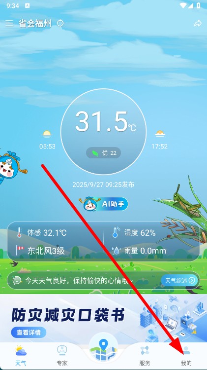 1、打开知天气,点击底部导航栏中的我的选项。