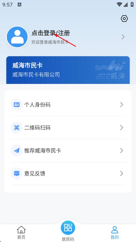 3、在“我的”页面,找到“点击登录/注册”选项并点击,进入登录界面。