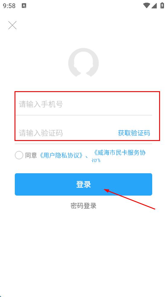 4、在登录界面,输入手机号,点击“获取验证码”并输入,勾选同意相关协议后,点击“登录”按钮。