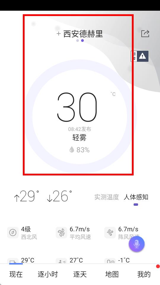 3、完成搜索后,选定对应城市即可查看该城市的天气信息,如西安德赫里显示的天气数据。