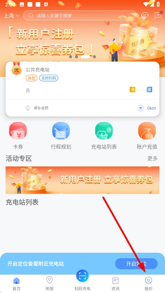 1、打开充电圈app,点击底部导航栏中的我的选项,进入个人页面。