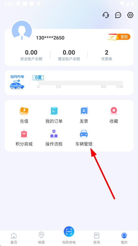 2、在个人页面中,找到并点击车辆管理选项,进入车辆管理界面。