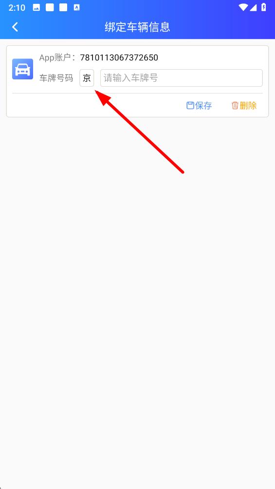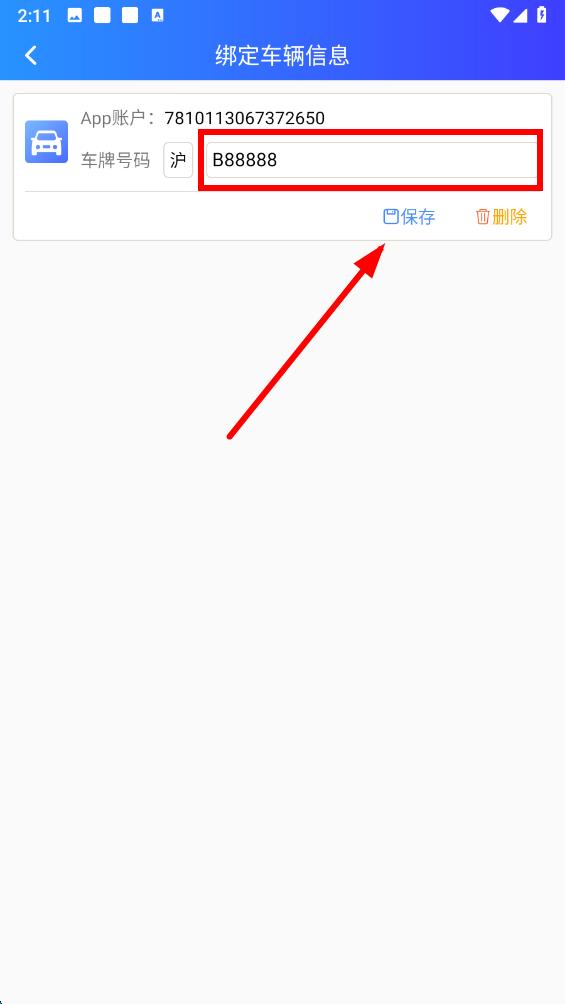 4、在绑定车辆信然后在输入框中准确输入车牌号码,点击保存即可完成车辆绑定。