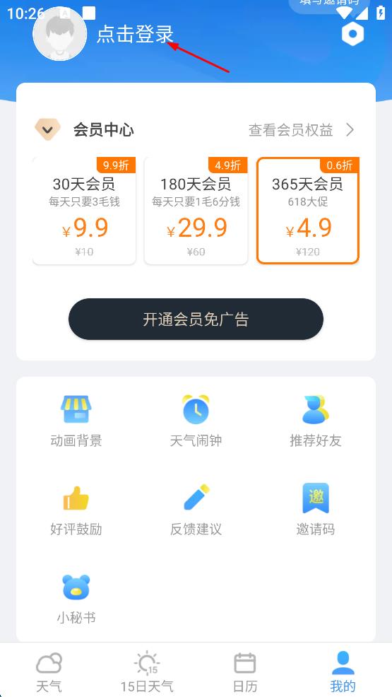 3、在个人页面点击点击登录字样,弹出登录选项。