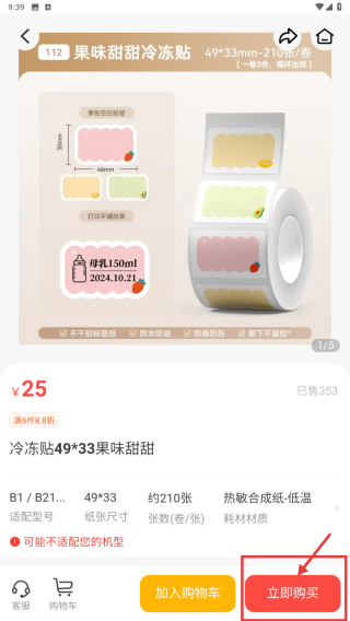4、在商品详情页,点击立即购买按钮,进行商品购买操作。