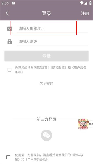 3、进入登录页面后,在输入框中输入邮箱地址。
