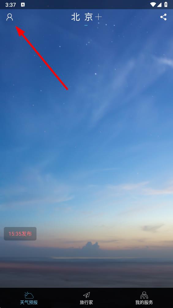1、打开美天气app,点击界面左上角人像图标,进入用户中心。
