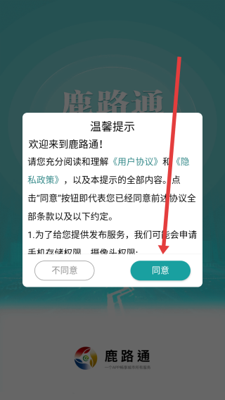 1、在点开鹿路通app后,可以点击弹窗中的同意按钮,进入使用。