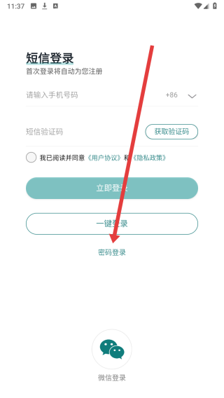 2、在进入到登录页面后,可以点击下方的密码登录按钮,切换登录方式。