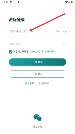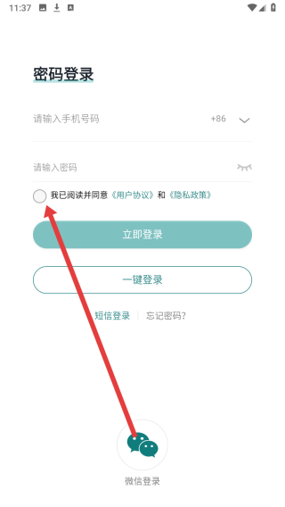 3、在进入到密码登录页面时,在登录前需勾选我已阅读并同意按钮。