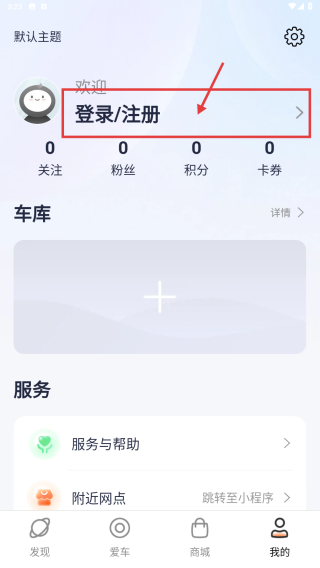 2、在个人中心页面,点击登录/注册区域,进入登录选项界面。