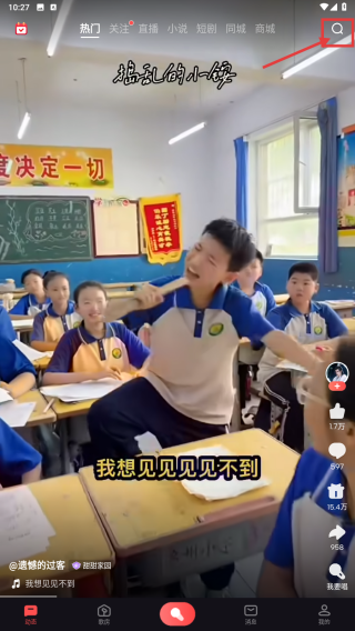 1、打开K歌类APP,点击右上角搜索图标,进入搜索页面。